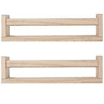 2 Sets Natural Wood Floating Book Shelves for Kids Room or Kitchen Spice Rack 2025
