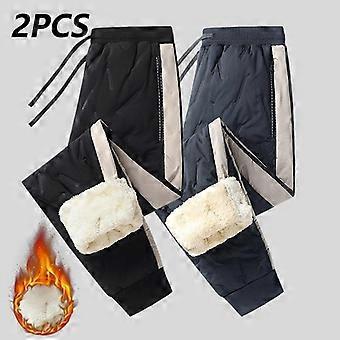 Men's Thick Fleece-Lined Snow Pants Colorblock Design Elastic Drawstring Waistband Side Pockets Heavyweight Winter Sizes 2PCS Matching Mensw