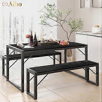45.5" Dining Table Set for 4, Kitchen Table with 2 Benches, Wood Dining Room Dinette Sets with Metal Frame for Breakfast Nook and Small Space - Black