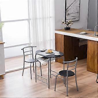 3-Piece Dining Set for 2: MDF Chairs + Compact Black Kitchen Table with Storage Shelf, Compatible with Small Spaces & Studio Apartments