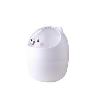 Mini plastic desktop trash can with lid, cartoon bear design, portable and removable
