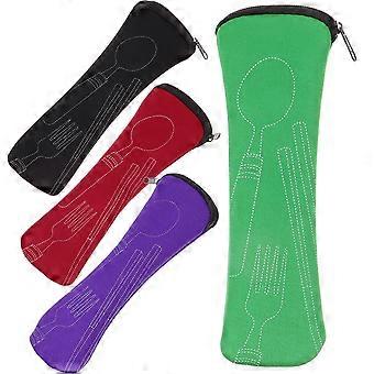 Multi-Function Fork Spoon Bag Picnic Carrier Green Convenience Storage 4Pcs