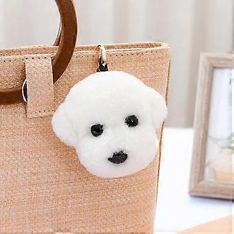 Little white dog Bichon teddy lamb hair real fur cartoon fur cute car pendant keychain bag bag hanging gift