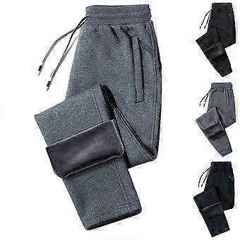 Men's Casual Loose Fleece-Lined Work Safety Cargo Pants, Black, M
