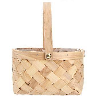 Portable Handmade Rattan Storage Container Storage Basket Houseware Storage Basket Wooden Woven Storage Basket with Handle(Medium)