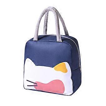 QW001 Lunch Box Handbag Insulated Bag Cat Lunch Bag(Tibetan blue)