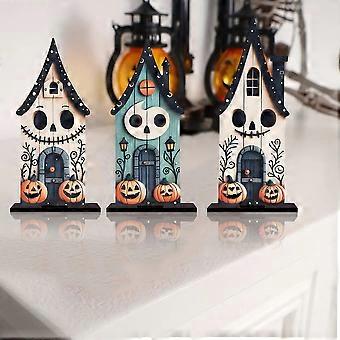3-piece set of Halloween house pumpkin ornaments, desktop decorations for Halloween desktop decorations