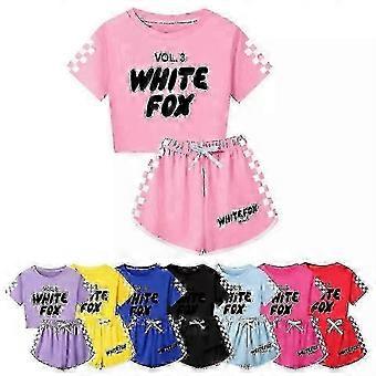 Kids White Girls Foxes T-shirt Short Sleeve T-Shirt + Shorts Set!zz21