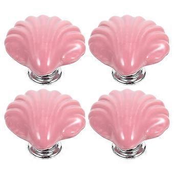 4pcs Pink Ceramic Shell Cabinet Knobs, Durable High Temp Fired Drawer Pulls for Bedroom, Kitchen & Wardrobe Cupboards