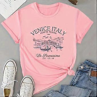 Fashion Women Line Street View Painting Print T Shirt Funny Casual O-neck Short Sleeves T-shirt Summer Female Tee Shirt