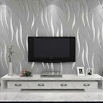 Simple and elegant silver wavy stripe 3D wall paper (9.5 meters)
