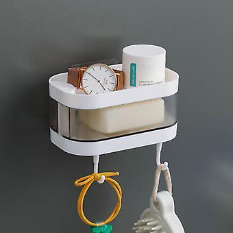 Soap Holder Box Rotate to Open/Close Adhesive Splash Proof Soap Dish with Water Collector & Hanger for Bathroom Kitchen
