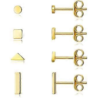 Sterling Silver Stud Earrings for Women Men- 4 Pairs of Hypoallergenic Simple Geometric Small Stud Earring Set Tiny Circle Triangle Square Bar Stud Ea