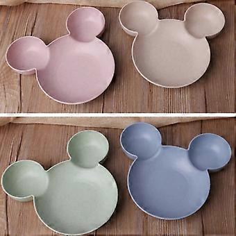 Baby Bowl Cartoon Shape Dinner Plate Reusable Plastic Children Tableware with Double Ear Blue Bowl