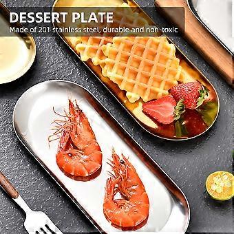 Dessert Plate Dinner Plate Gold / Silver Stainless Steel Plate Multipurpose Steel Metal Ellipse Plate for Home Hotel Camping Outdoor Party