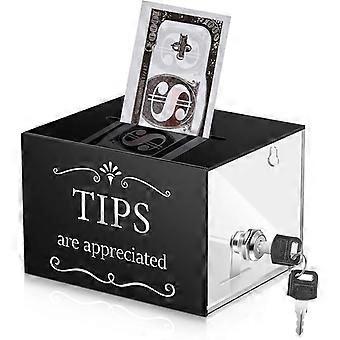 Tip Jar with Lock: Transparent Money Storage Container for Donations and Fundraising - Acrylic Tip Jar for Restaurants Cafes Bars and Musicians