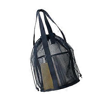 Large Mesh Beach Bag Children Sand Away Outdoor Foldable Kids Beach Toy Swimming Towel Clothes Storage Bag for Women Navy Blue