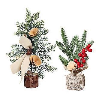 Tree Decorations Mini Artificial Christmas Tree Table Home Office Party Red Berry and Pines 25 Cm Festive Atmosphere 2Pcs