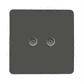 Trendi Artistic Modern Glossy Tactile 2 Gang TV Socket Charcoal