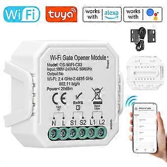 With this Tuya WiFi garage door opener, you can check the open or closed status of the garage swing or sliding door in real time in the APP. Supports remote opening or closing of the door via the Tuya APP. Compatible with Google Home and Amazon Alexa for voice control. Time setting function, with schedule timer function to meet your individual needs. And you can share control of the device with your family using the "Share Device" feature in the APP.Features:Real-time Monitoring: You can check the open or closed status of the garage swing or sliding door in real time in the APP.Tuya APP Control: Support for remote opening or closing of the door via Tuya APP. Support for setting the schedule, viewing the history record, and receiving the real-time notification on your mobilephone.Voice Control: Supports voice commands to control the garage door, compatible with Google Home and Amazon Alexa for voice control, freeing your hands and making it easier to control the device.Schedule Timer Function: Time setting function, with schedule timer function to meet your individual needs.Automation Function: You can open the garage remotely and the countdown feature will automatically close the garage door when the time is up.DeviceSharing: You can share control of the device with your family using the "Share Device" feature in the APP.Specifications:Name: Garage Door Opener ControllerMaterial: ABS+PCInput voltage: 100-240VAC, 50/60HzOperation frequency: 2.4GHz-2.4835GHzOperation temp: -10 + 40Protocol: WIFI IEEE 802.11b/g/nOperation ranges: <100mIP rating: IP20Item size: 52 * 48 * 24mm / 2.05 * 1.89 * 0.94inItem weight: 48g / 1.69ouncePackage size: 60 * 50 * 30mm / 2.36 * 1.97 * 1.18inPackage weight: 54g / 1.90ouncePacking List:1 * Garage Door Opener Controller1 * Bracket