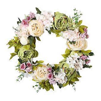 Vivid Peony Wreath with Rattan Base, 40cm Outer
