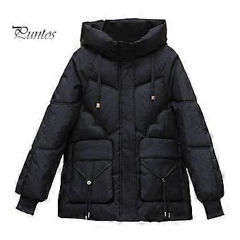 Winter Down Coat Thickened Padded Hooded Pockets Zipper Closure with Drawstring And Pockets Windproof Heat Retention Daily Cold Weather Outwear