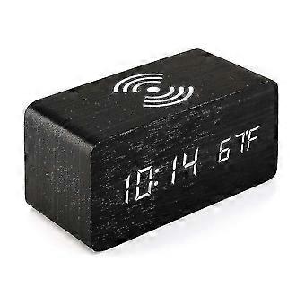 Wooden Digital Alarm Clock with Wireless Charging, 3 Alarms, Voice Control, Snooze, LED Display for Bedside & Office